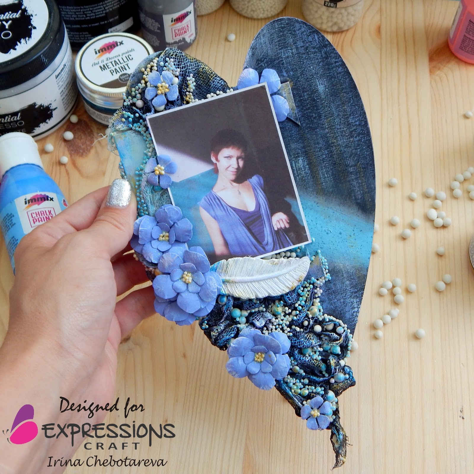 This is Irina Chebotareva (IraChe). Today I want to show on Expressions Craft blog my DT project. This time I've created a mixed media canvas "Heart".