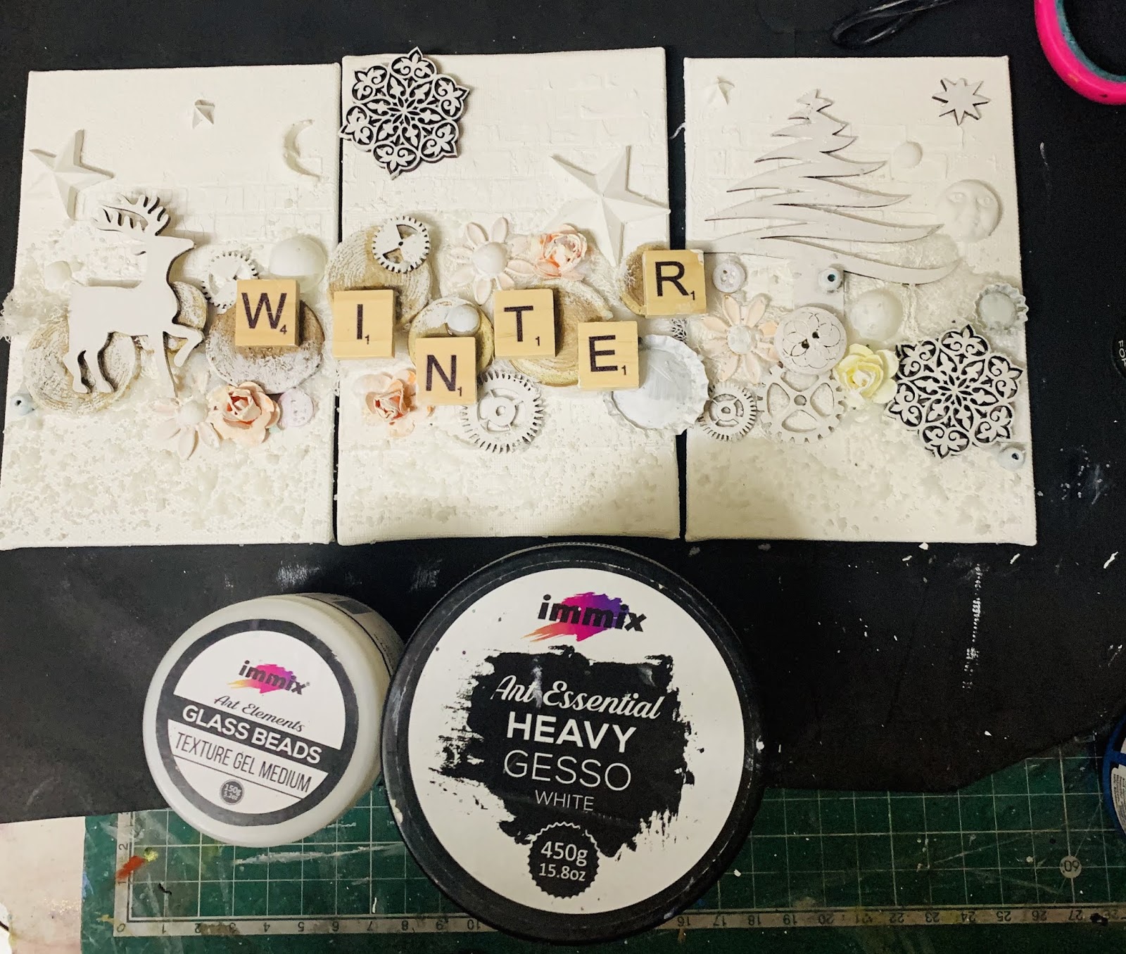 This is Vidhi here, I am back again at Expressions craft blog with my pictorial post! Now it's time to celebrate winter... this month we have an amazing challenge of " WINTER CELEBRATIONS ". When I will think about the winter, the first thing that will appear in my mind is Snow !!! I love snow and blue wintery nights! Today I created three canvas panels for Home Decor. Have a look
